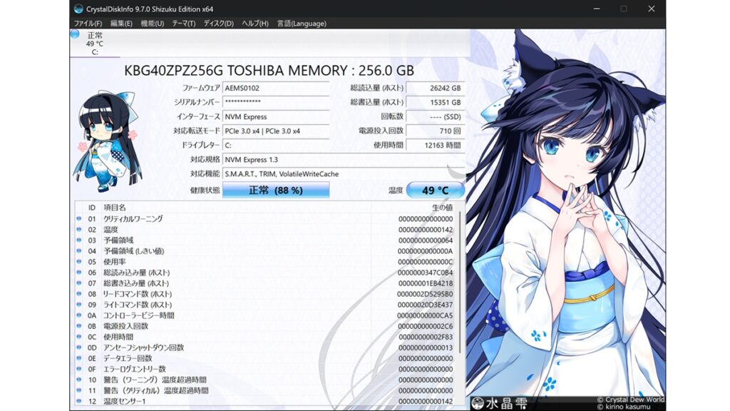 私のおすすめのチェックツールは『CrystalDiskInfo』